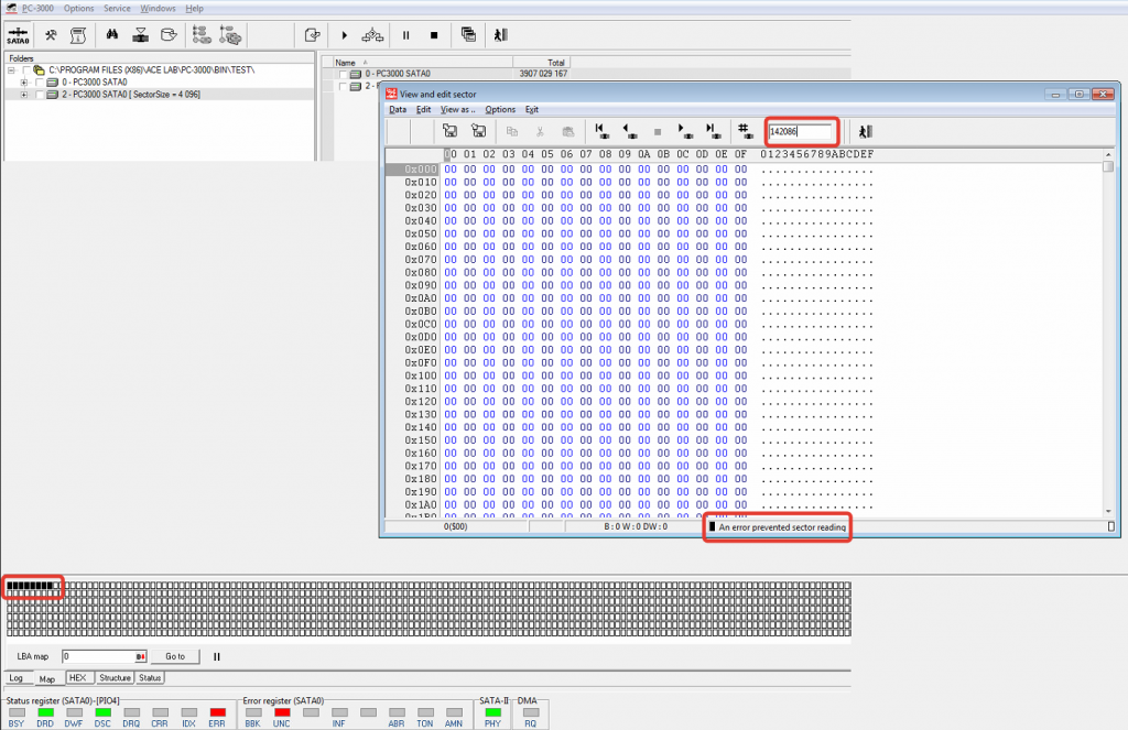 最近我遇到了这样一个案例:客户询问为什么某些扇区可以通过PC-3000实用程序读取,但不能通过DE读取。