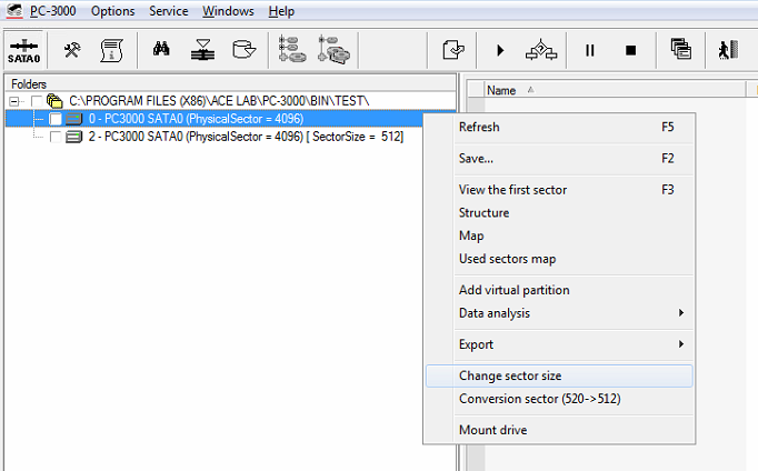 当前驱动器使用物理扇区大小的可见标志是,当您尝试在DE中读取一个扇区时,映射中会读取8个扇区。