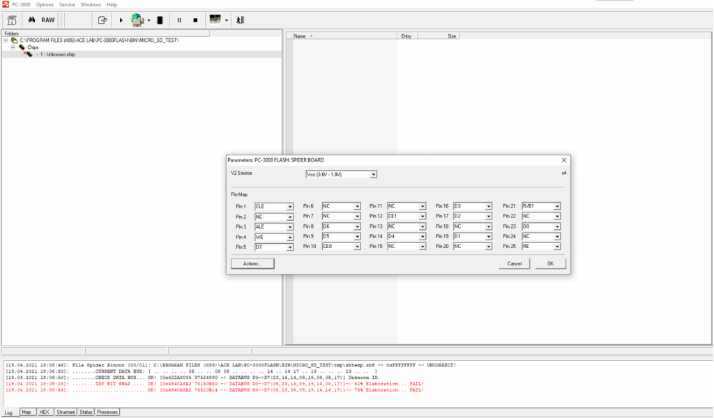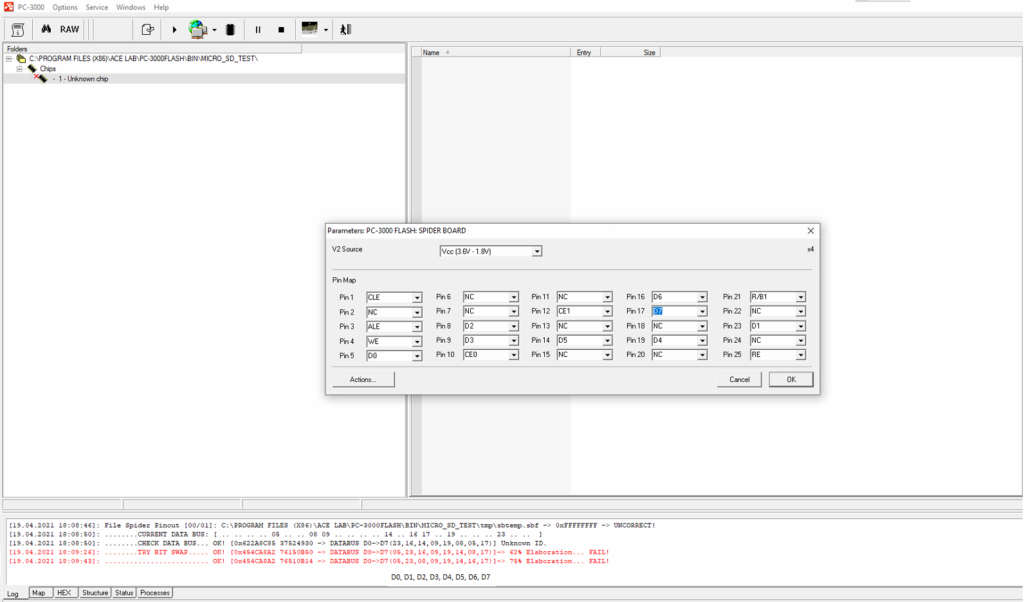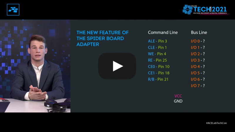 如果您曾经处理过单片式数据恢复,您肯定遇到过需要找出总线线路引脚顺序的情况。以前,如果您不知道总线线路引脚的顺序,并且没有包含所有信息的引脚排列图 – 这样的案例是无法解决的。但现在,随着我们在ACE Lab 2021年在线技术大会上展示的新功能,事情变得更容易了。从现在开始,使用Spider Board适配器和最新的PC-3000 Flash 软件更新 7.5.11,您将能够找出总线线路引脚的顺序!