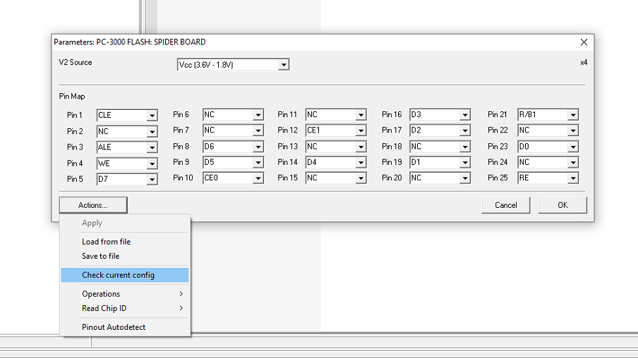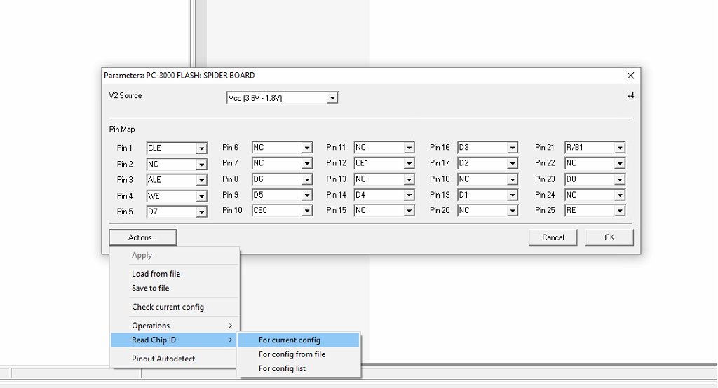 选择我们的新功能 – "读取芯片ID" – > "对于当前配置" 来设置自动检测总线线引脚的顺序。