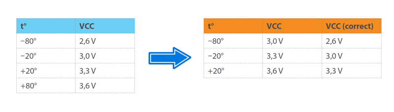 每个芯片都知道它当前工作的温度。根据温度的变化,芯片的电压也会改变。这里您可以看到一个包含温度和电压近似值的表格。有时,由于芯片的内部问题,此表中的值可能会偏移,并且由于电压错误,您将无法重读扇区。