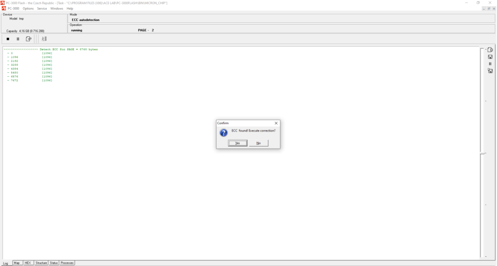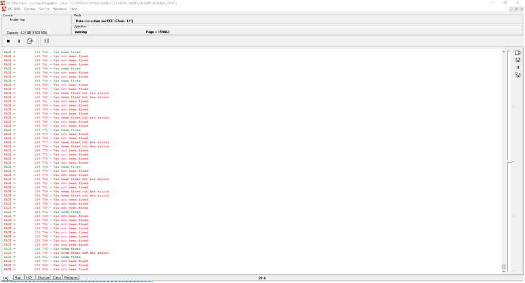 在某些情况下,在检测和校正ECC之前,您应该检查您的转储是否存在坏字节或应用XOR(主要针对ITE, SSS, AU控制器),然后才能在图上检测ECC。如果我们谈论旧的SLC和MLC NAND案例,在您进行页面转换之前,ECC校正将无法进行。