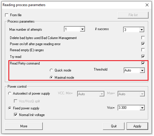 如果您的芯片不支持读取重试,请尝试使用更多 – 读取重试模式检查(此方法仅适用于现代QLC/MLC/TLC芯片)