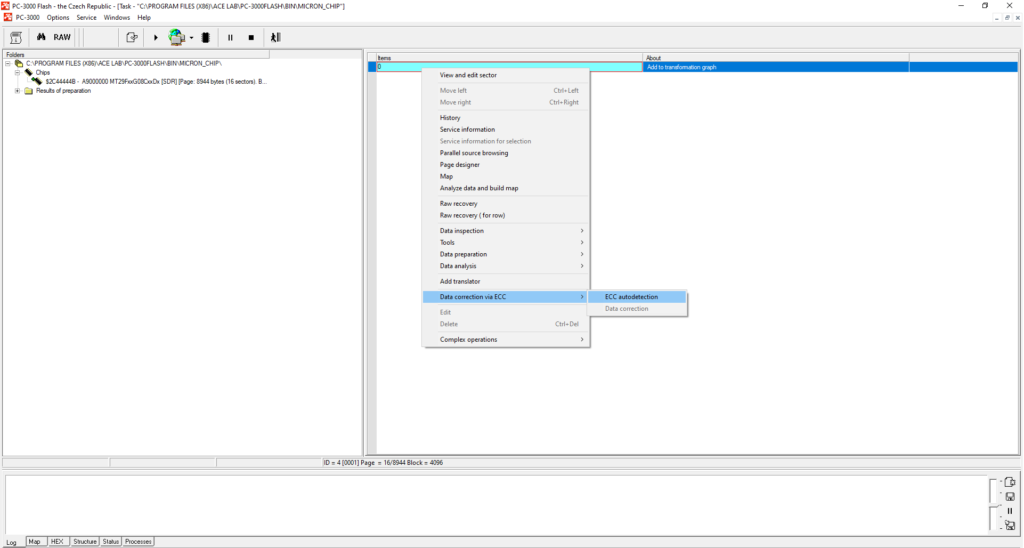 我们强烈建议您仅在转换图上自动检测ECC(不要在芯片上检测)。在芯片上校正ECC时可能会出现不同的错误。不要浪费时间在芯片上校正ECC(屏幕左侧芯片节点下的部分)。