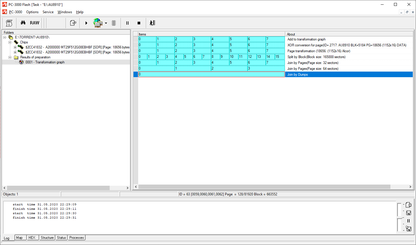 当重读完成并且我们的转储处于完美状态时,我们可以将XOR从ID=2715更改为ID=2717(用于数据的AU8910)并执行交错和按页面合并: