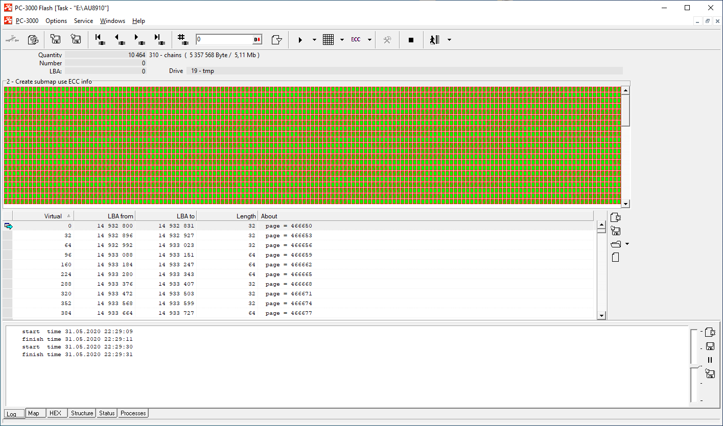 如果AU6989/AU6998使用XOR并且存在坏字节,那么这个坏字节也会被XOR处理,结果导致坏列看起来非常奇怪和平滑!很难检测到它们(但如果您至少拥有2018年的PC-3000 Flash Ver. 7.2.9,就没那么难)
