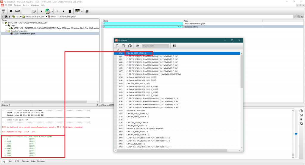 但是我们如何知道在这里使用哪个XOR呢?如您记得,我之前提到过COB控制器通常基于AU或CBM技术。同时,ECC 1085 x8对AU来说并不典型,而对ChipsBank控制器更典型。在静态XOR列表中没有任何兼容的模式,但在动态XOR列表中 – 我们找到了一个完全匹配的: