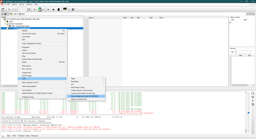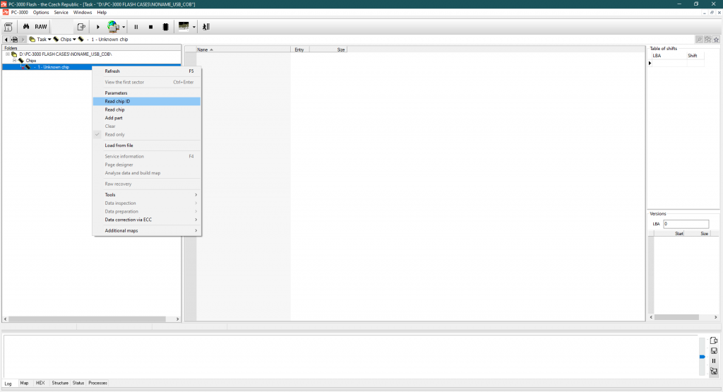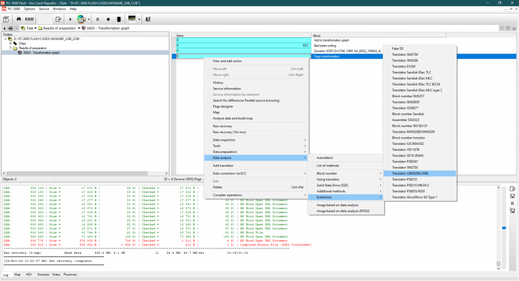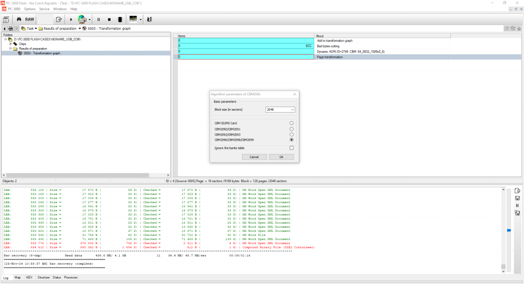 获取文件结构的唯一方法 – 使用转换器算法,因为ChipsBank控制器不在SA内部使用块号标记。只有转换器表。