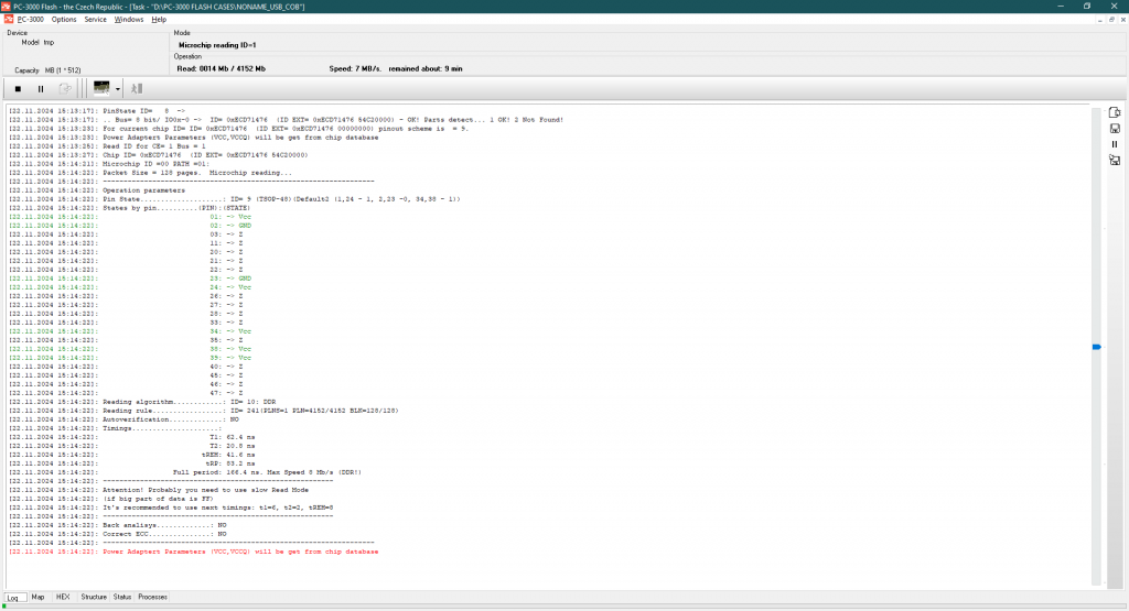 如我们所见,这是一个旧的MLC 0xECD71476 – 54C20000 NAND存储芯片,容量为4GB。继续读取: