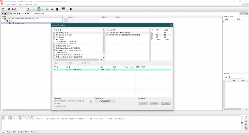 那么,在创建任务后,我们需要从这个TSOP-48W三星芯片读取转储: