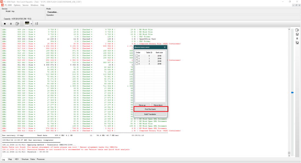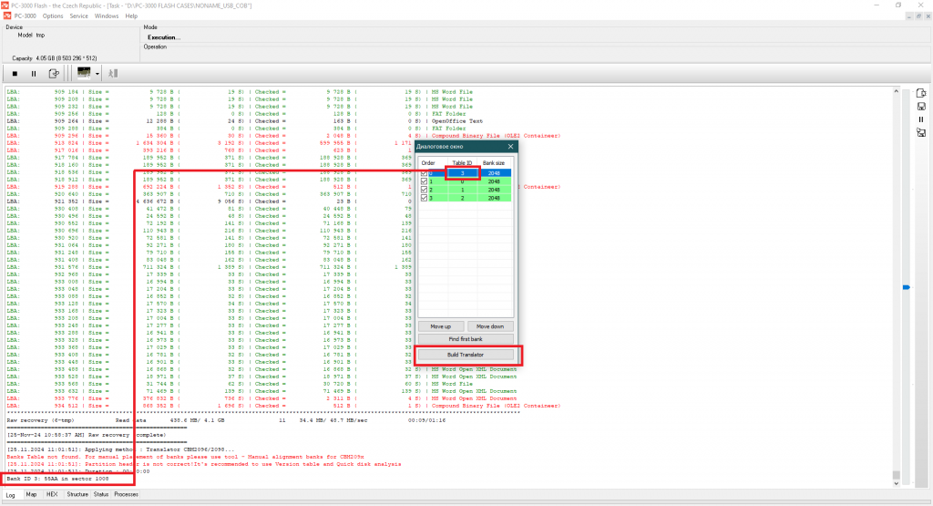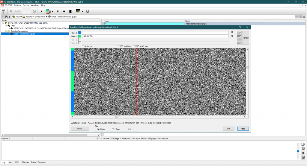 正如我们发现的那样,当前的控制器是某种带有动态XOR的ChipsBank CBM209x。CBM控制器系列内部没有任何标记 – 只有转换器表,允许控制器以正确的顺序对块进行排序。