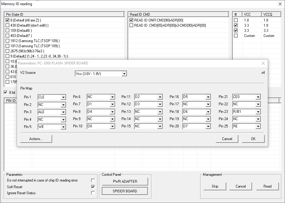 然后我们创建一个包含1个物理芯片(用于CE0)的任务,在软件中设置引脚并将其读取到转储文件。这将是128 GB的部分。