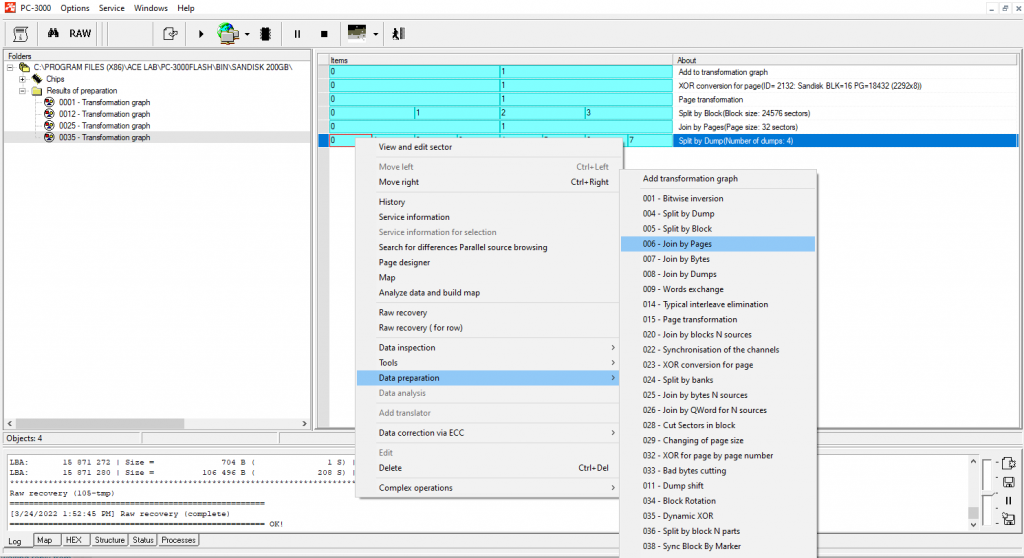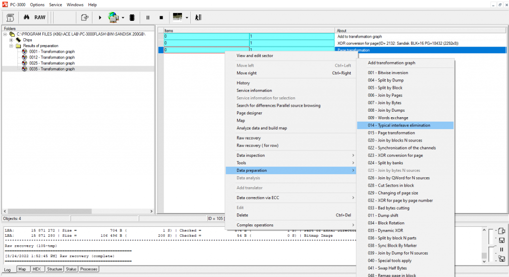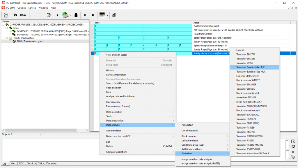 SanDisk控制器使用子块来更新文件系统。这就是为什么当我们应用块编号类型1 [0000]构建镜像时,可能只能得到部分文件系统甚至空镜像。为了恢复文件夹结构,在90%的情况下,我们需要一个转换器。