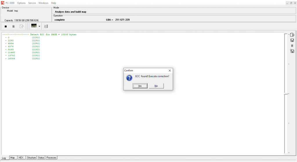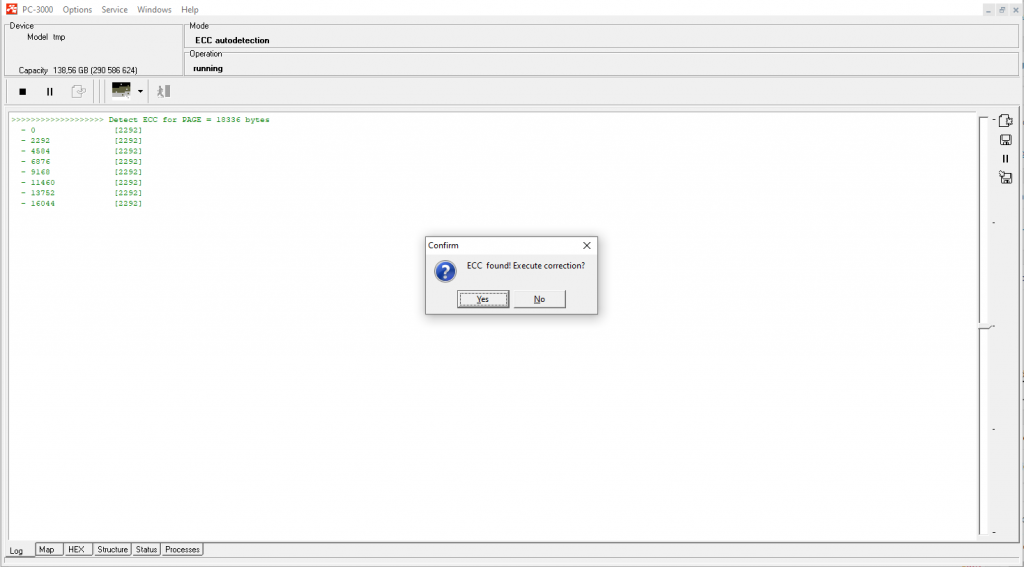 成功读取后,我们执行ECC校正。同样,您不应忘记重新读取以获得最佳的转储质量。
