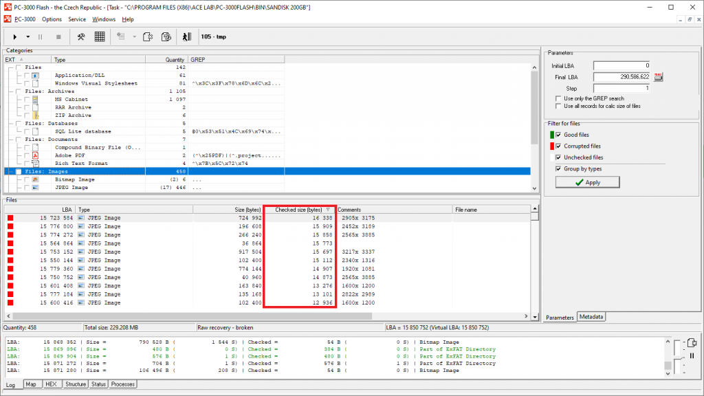 请注意:我们需要在每个部分上获得尽可能好的转储质量,以获得良好的恢复结果。这就是为什么我们应该关注坏扇区。在重新读取期间,将所有未校正的链从小值到大值排序。