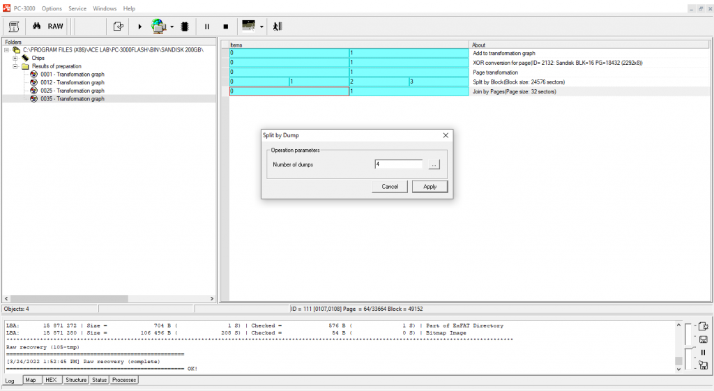 接下来,我们分割转储(软件将自动选择要分割的转储数量,这取决于NAND内部的LUN数量):