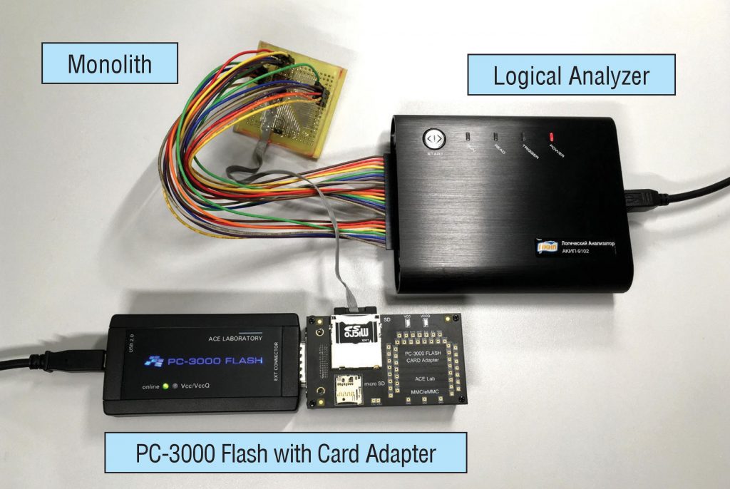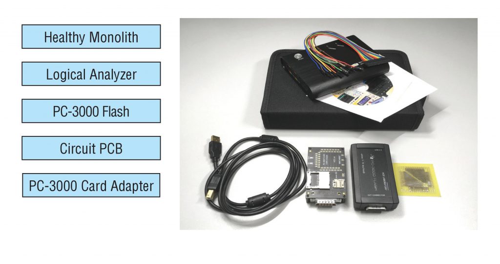 在我们的示例中,我们将使用PC-3000 Flash和卡适配器,但在现实生活中,你可以使用普通的读卡器。唯一的问题是 – 在其上控制电源供应会更加复杂。有时我们需要将其打开/关闭;