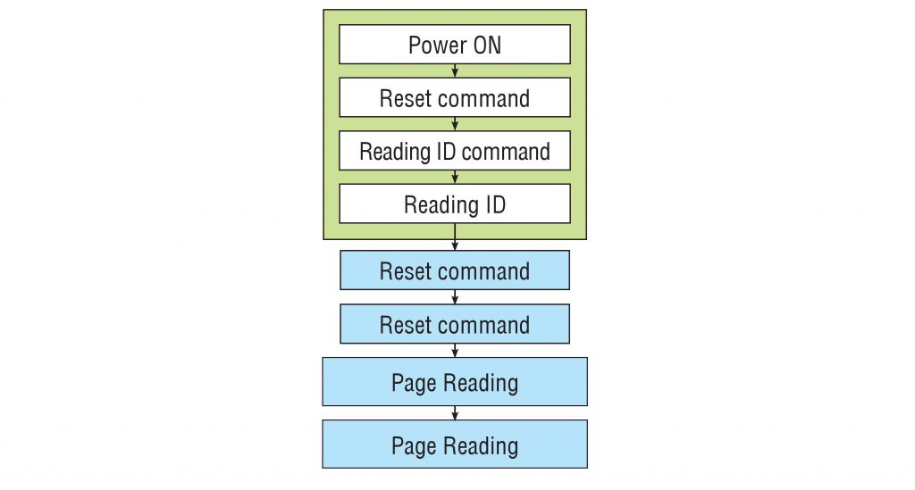首先我们应该记住,每次当我们启动健康单片式存储设备的电源时,它会执行一些步骤以达到其初始化状态。以下是电源启动后发送到单片式存储设备的命令示例: