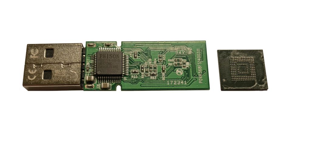 这不是内部包含NAND和CPU的普通eMMC芯片 – 这是一个损坏的、筛选过的eMMC,带有禁用的内部控制器。制造商将此eMMC用作与PS2251-67-5控制器耦合的外部NAND芯片。这就是为什么通过eMMC接口读取此eMMC芯片将毫无用处。但是您可以使用本文中描述的方法从此类设备中提取数据。ONi硬盘123