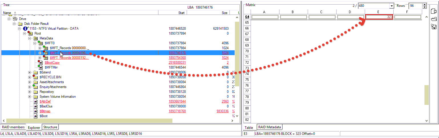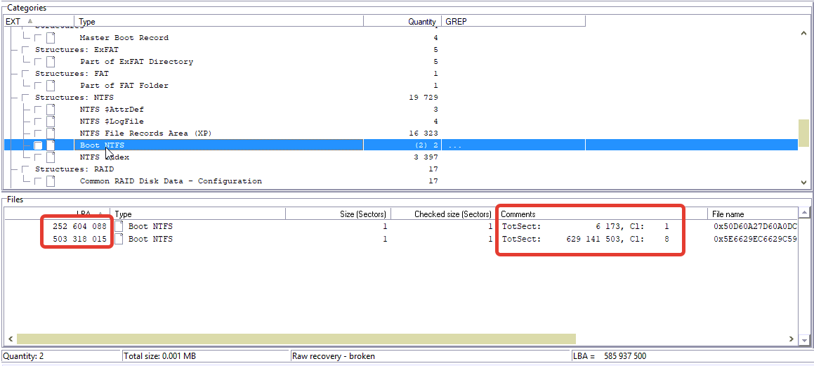 在左侧,我们得到了此引导记录在 RAID 阵列上的近似 LBA。