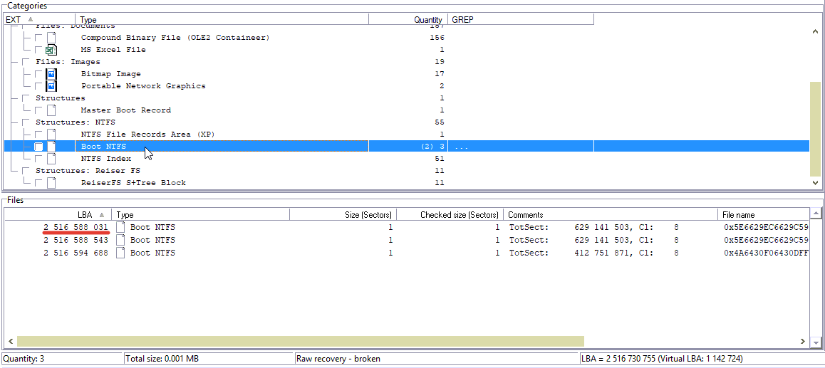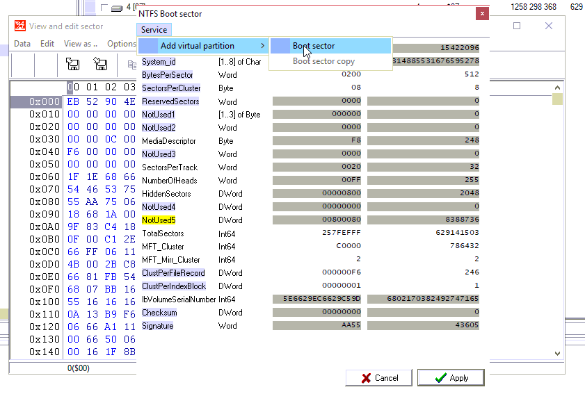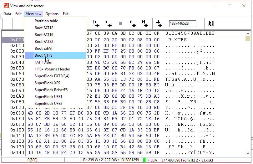 在右侧,我们粘贴了 NTFS 引导记录的 LBA。