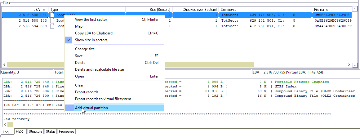 我们为找到的 NTFS 引导记录添加虚拟 NTFS 分区。