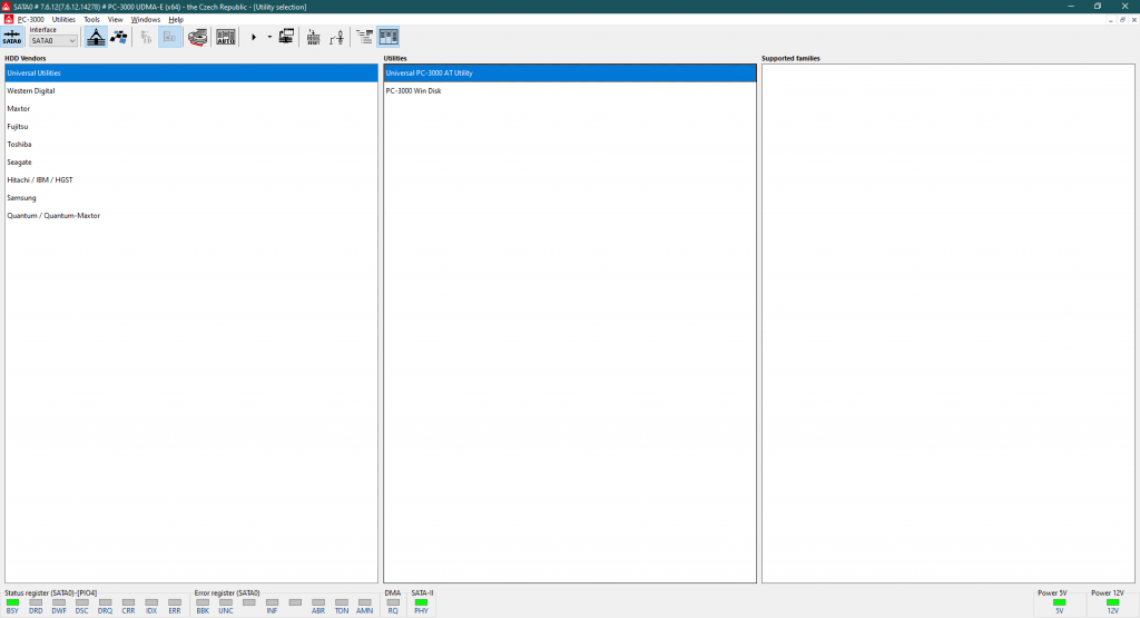 然后,让我们启动 PC-3000 UDMA-E 软件,并选择我们的控制器系列: