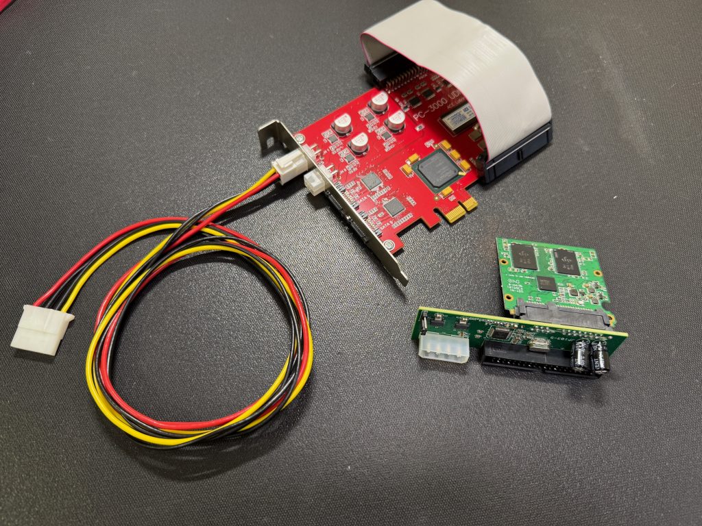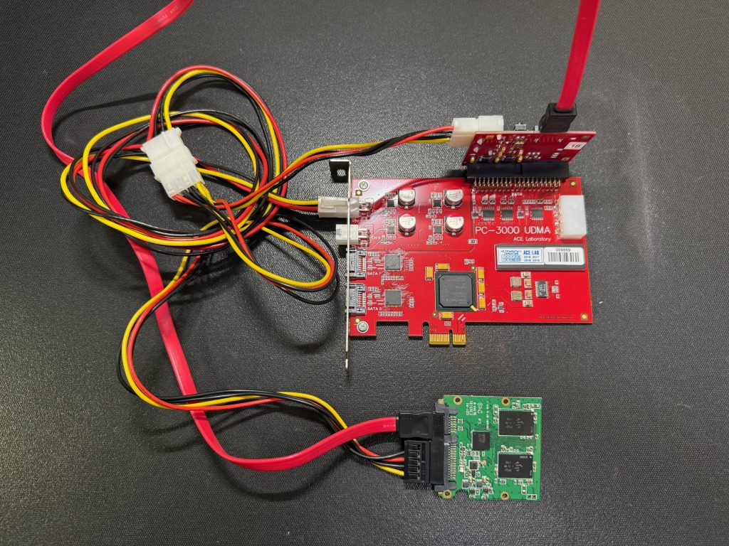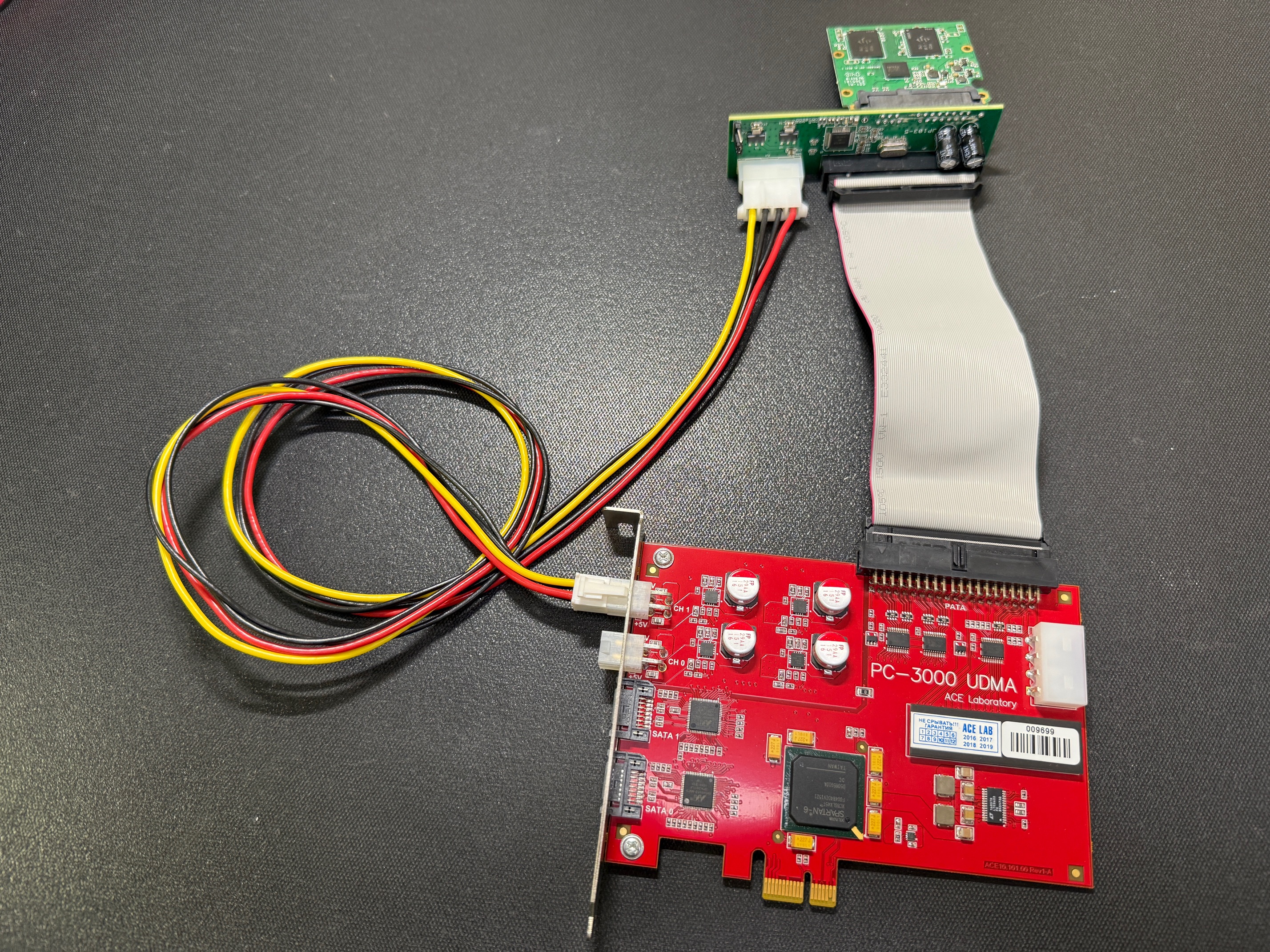 以及在 PC-3000 UDMA-E 上使用原装 ACE Lab PATA 转 SATA 和非原装、第三方 PATA 转 SATA 时的样子: