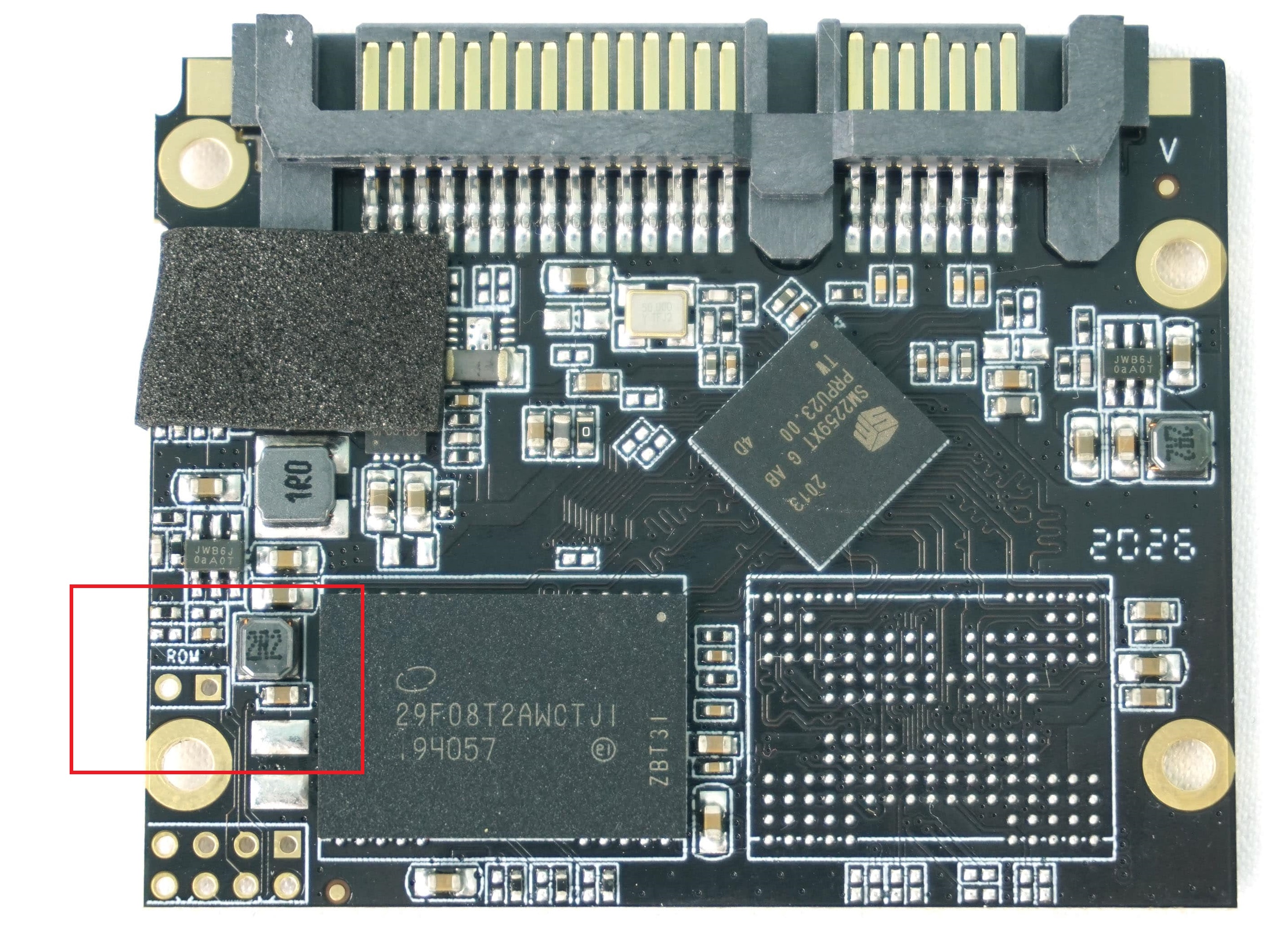 安全模式引脚通常在 SM2258/SM2259XT 上标有 ROM 标记