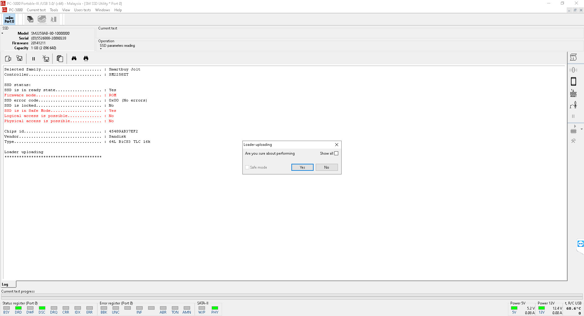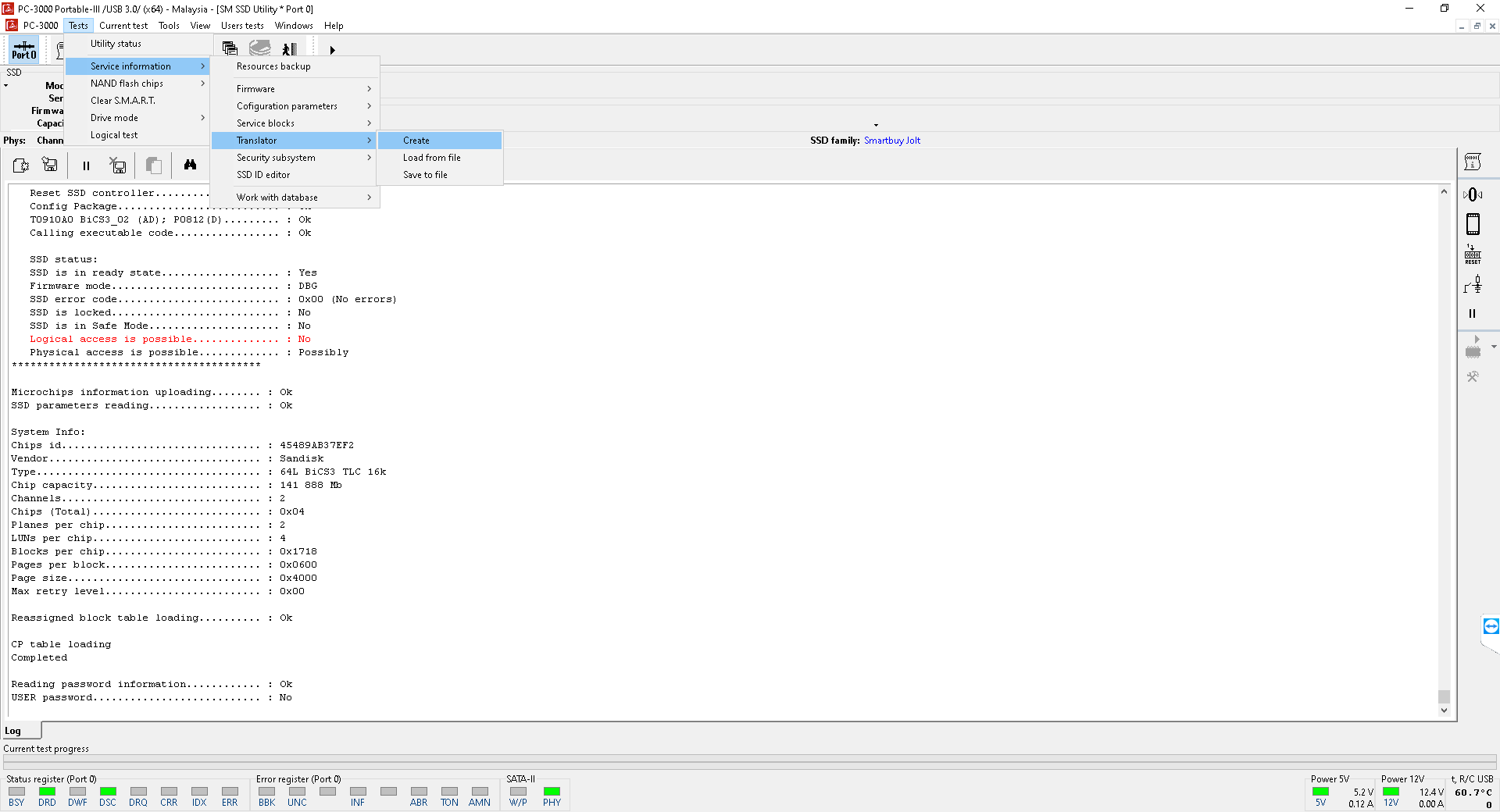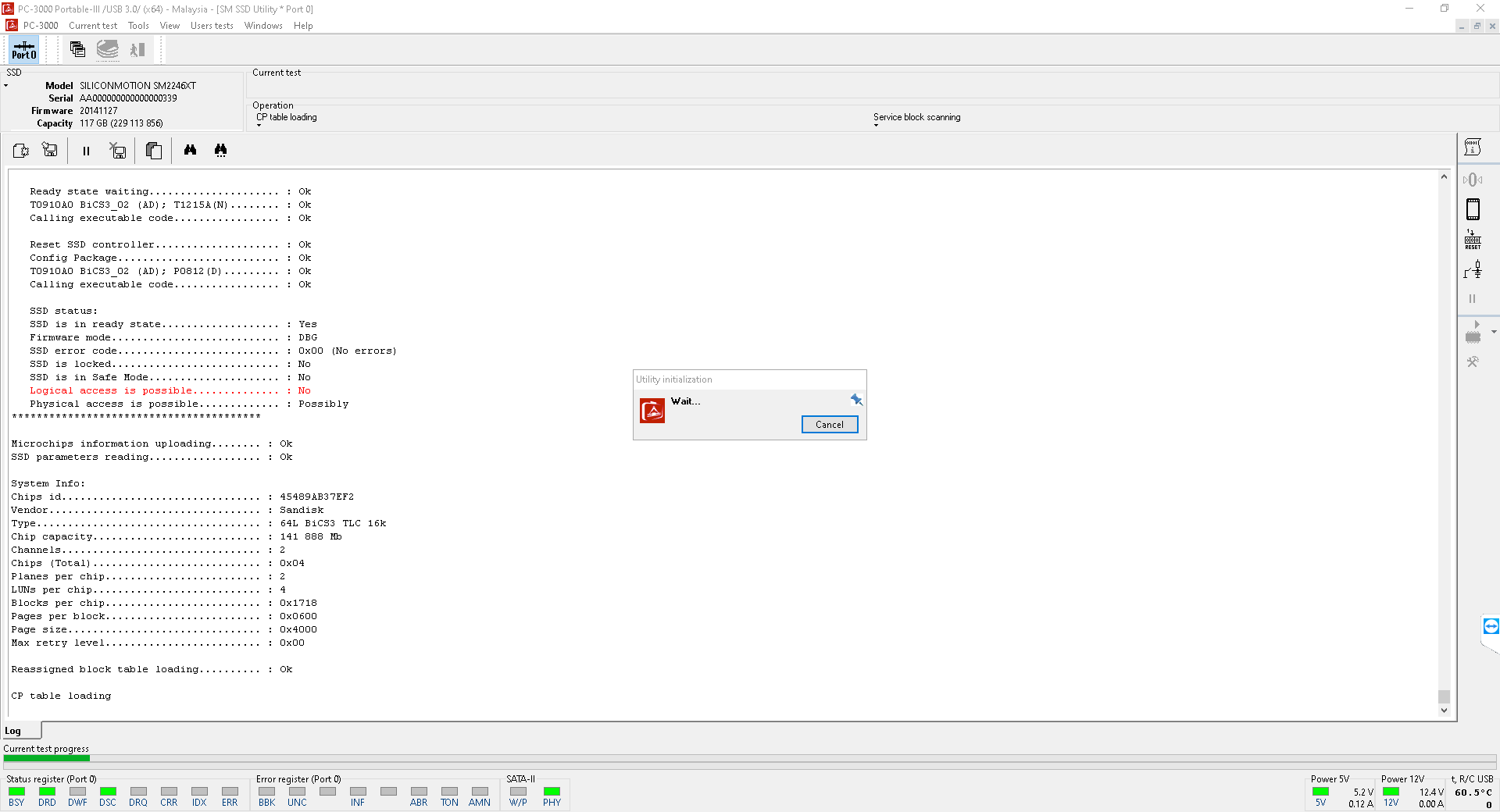 之后,我们可以上传加载程序并见证 PC-3000 SSD 的神奇之处: