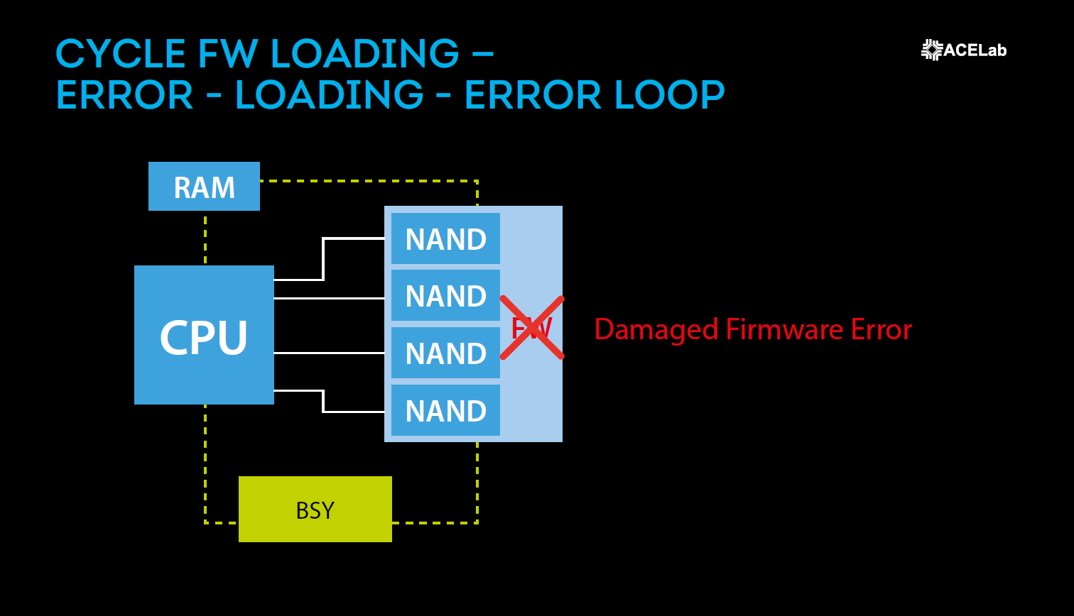 当我们启动驱动器并看到它显示错误的身份标识、错误的容量或处于 BSY 状态时——这是因为内部固件错误。通常,此错误是由于 SSD 中 NAND 芯片上存在大量坏扇区而出现的。