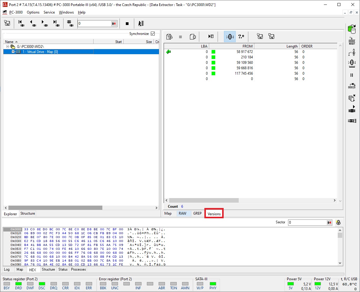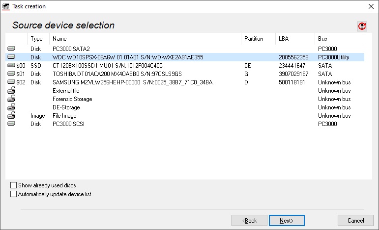 接下来我们再次进入 Data Extractor 并创建另一个任务,但在此阶段选择 PC-3000 工具程序作为数据源非常重要:
