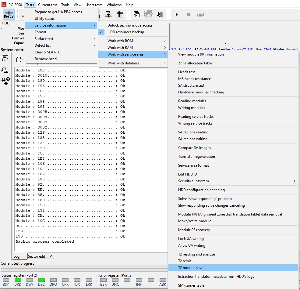 让我们回到 WDC Marvell 工具程序。首先,使用工具程序中的新功能保存整个 T2 模块:保存 T2 模块。
