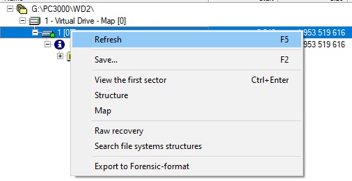 过程结束后,我们将在文件夹树中看到某个虚拟驱动器。如果我们尝试展开它,仍然看不到正常数据: