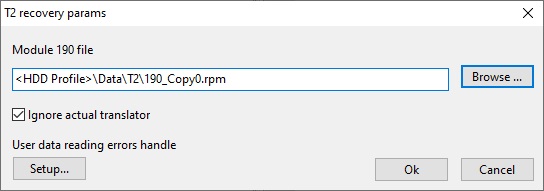 然后选择之前在保存 T2 模块过程中保存的 T2 文件。文件名是默认的,在我们的例子中是 _190Copy0.rpm。同时选择忽略当前译码表,因为在我们的案例中,格式化后当前的 T2 不正确。例如,如果我们需要恢复已删除的文件,则可以取消勾选此复选框。