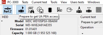 接下来,我们按下顶部工具栏上的另一个新按钮准备获取 UA PBA 访问权限,因为在这种情况下我们将使用物理块寻址。