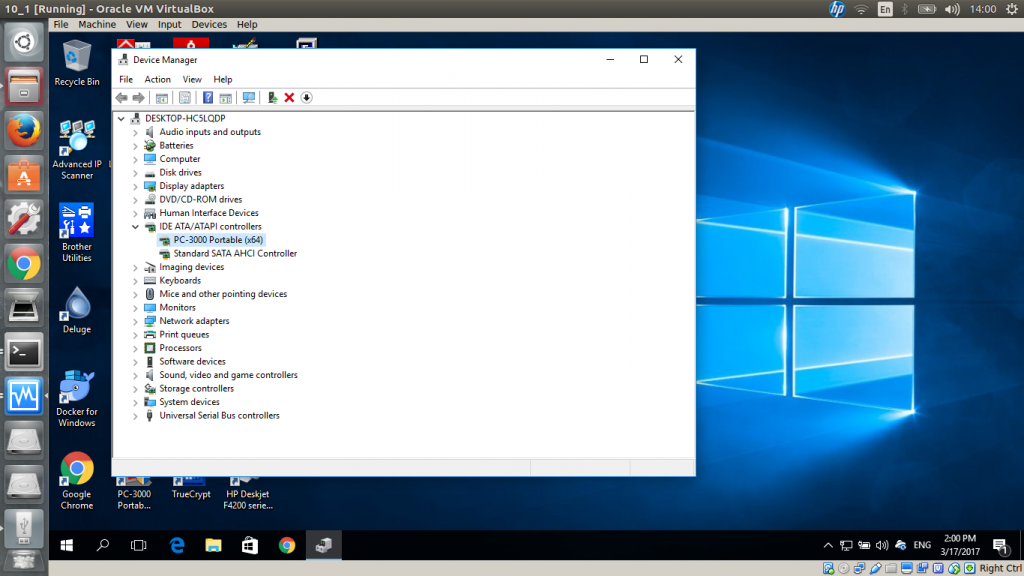 然后运行虚拟机,并确保在设备管理器中可以看到PC-3000: