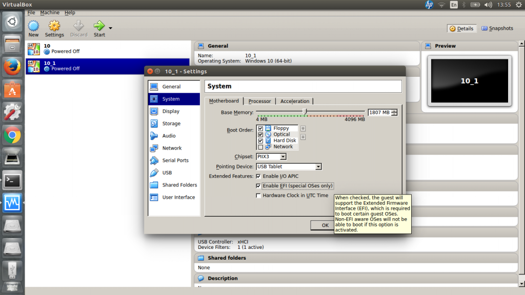 不要忘记启用EFI(如果您在安装Windows时启用了它):