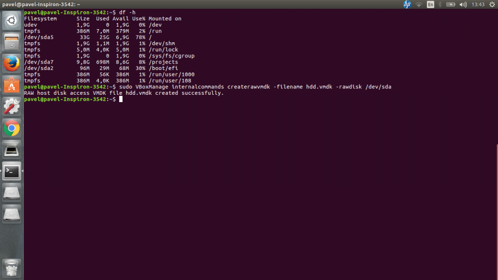 此外,要能够从原始磁盘创建vmdk,您需要使用sudo,或者执行此操作的系统用户必须添加到“disk”组中。