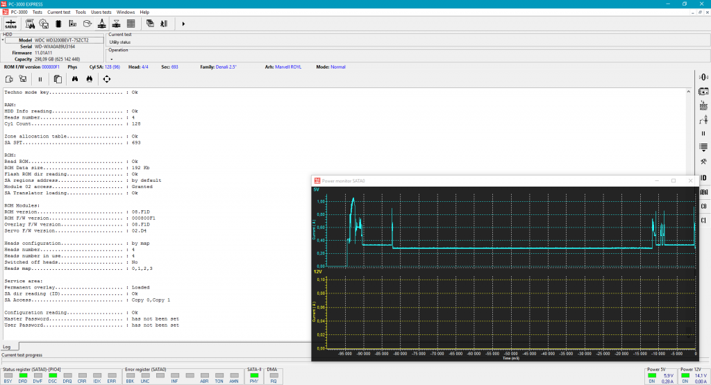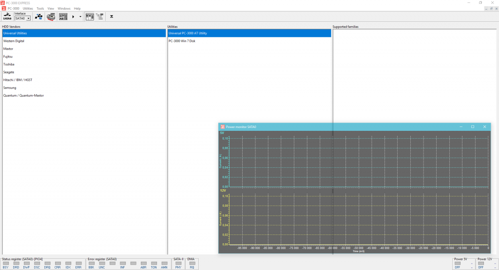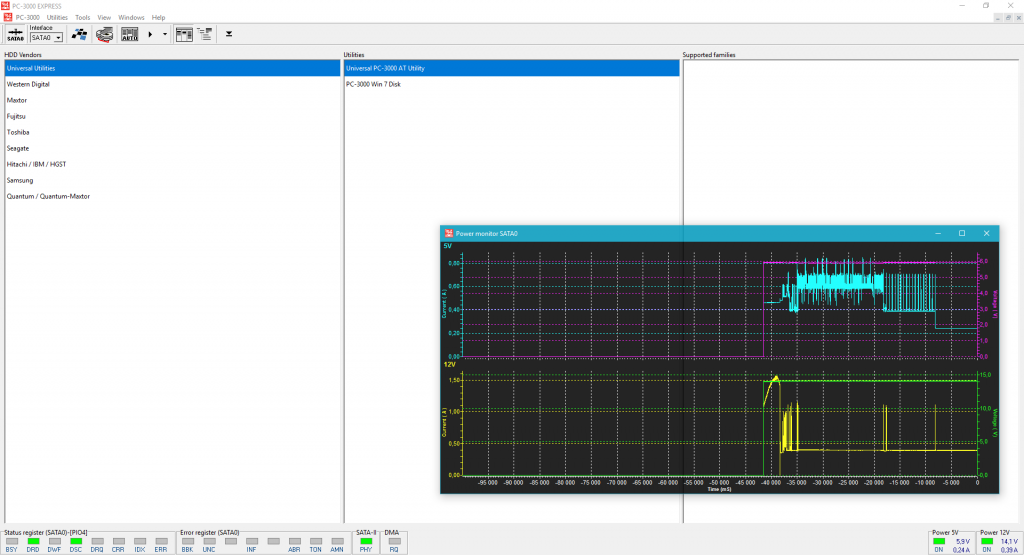 从PC-3000 x6.3新软件版本开始,可以使用新的测量功能。要激活新窗口,我们只需在PC-3000主工具选择窗口中点击电压字段:
