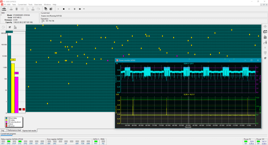3.5″ ST2000DM001 (Grenada)。带电压图表。弱磁头: